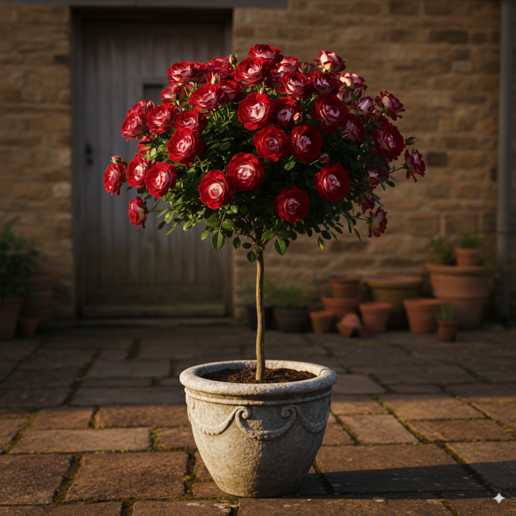 🌹 Stromková růže – Díky své výjimečné eleganci je tzv. sloupovitá růže ideální květinou pro zvýraznění krásy vaší zahrady. Její vzhled připomíná velkou kytici růží, což z ní činí velmi dekorativní prvek. 🌺 Růže v květináči je perfektní originální dekorací pro vaši terasu, balkon nebo zahradu. Naše růže vnese do vašeho venkovního prostoru nádech exotiky a vznešenosti. 🌿